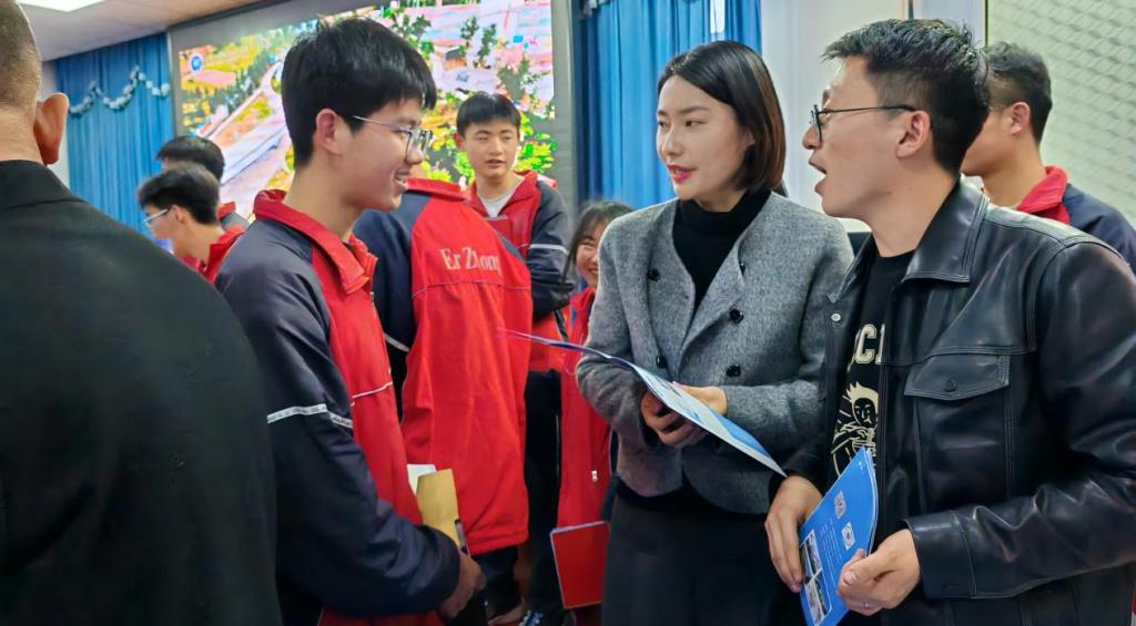 在与员工面对面交流过程中,宣讲团队老师通过口述、发放宣传册、播放宣传视频等方式,详细介绍了公司招生方案,强调了公司优势、专业特色、报名时间、方式、录取等细节,重点介绍了公司关于减免学费、国家助学金、国家奖学金等助学措施,细致耐心地回答了同学们的提问,赢得同学们热烈掌声。