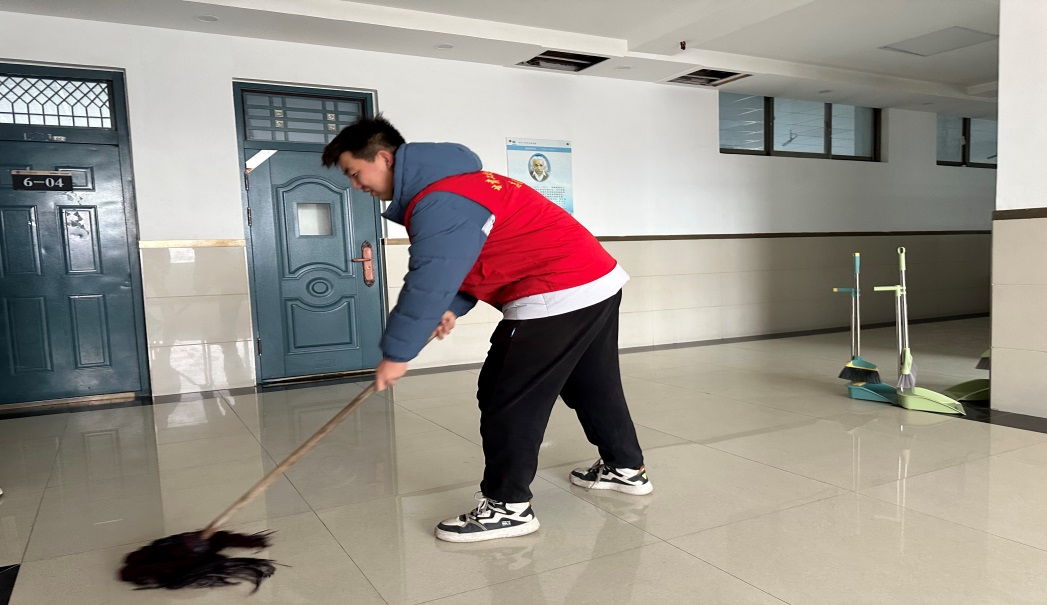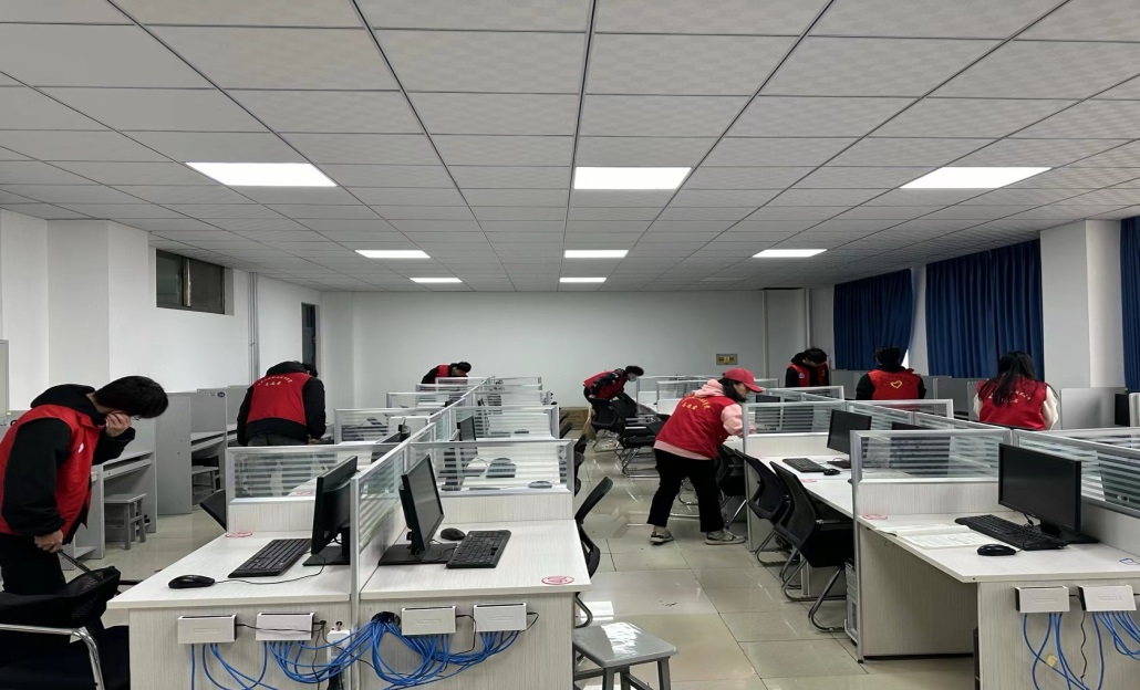 在校内志愿者们认真打扫了实训楼等教室的卫生,清扫活动中,志愿者们充分发挥不怕脏、不怕累的优良作风,仔细地一一进行清扫,确保整个行动中不留死角。经过大家一个下午的共同努力,实训室的环境焕然一新。