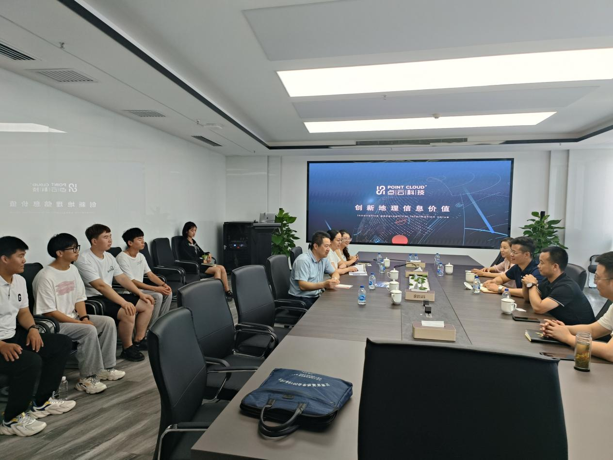 第三站,陕西点云科技有限公司。年轻企业家总经理点云科技马威介绍了公司的发展、企业文化、以满足智慧地球时空信息战略需求为出发点,以创新地理信息价值为目标,提供跨网络、跨行业、跨终端的地理信息解决方案和服务。刘乃君副书记对公司的快速发展表示赞赏,同时希望能与点云科技在校企研发、培养跨行业跨领域复合型技能人才方面开展深入合作,促进毕业生更充分和更高质量就业。公司四名优秀实习生汇报了实习期在点云科技的想学习工作生活情况,感谢企业给予发展自己的平台,增强了就业信心,并对母校的培养表示由衷的感谢,为他们推荐优质企业,帮助他们实现梦想。