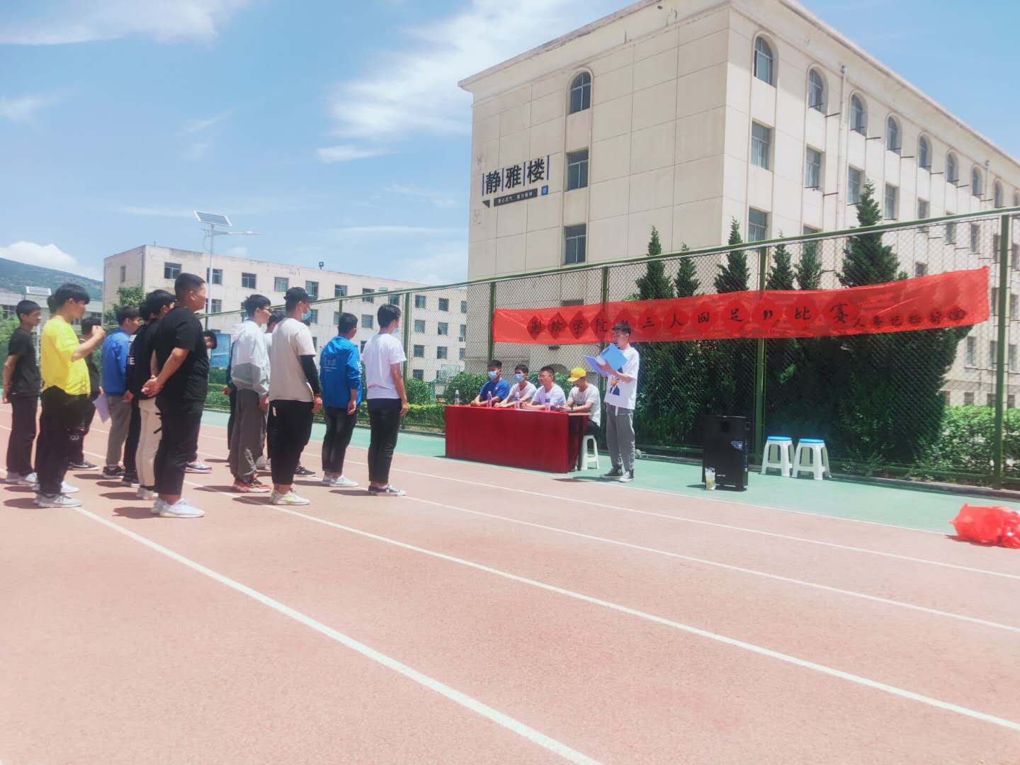 比赛伊始,同学们行动迅速,快速整队,活动情绪高涨。在众人的热切期盼下,裁判员张弛进行了赛前纪律要求和比赛规则的宣读,同学们都跃跃欲试。