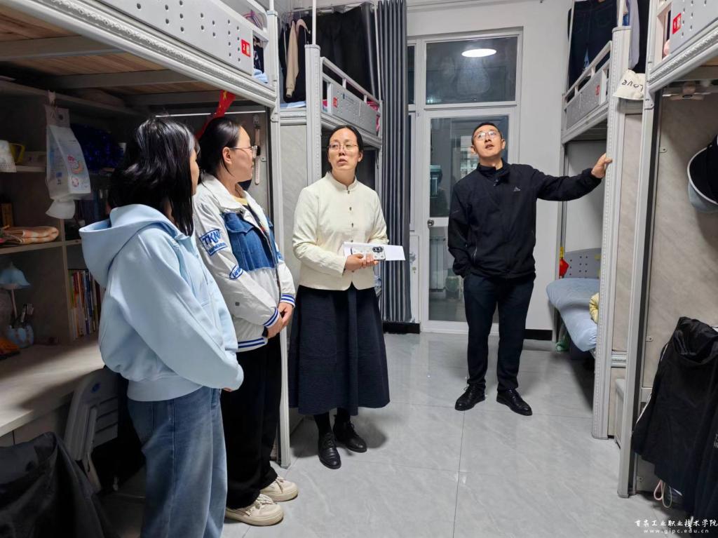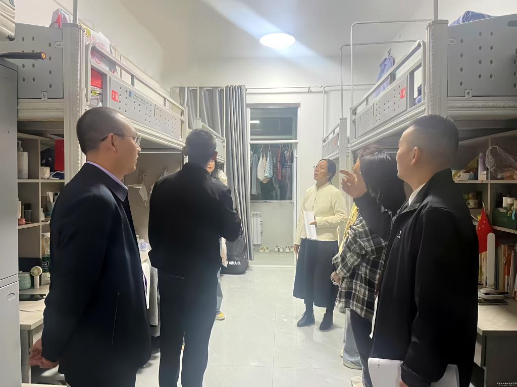 班子成员一行对员工宿舍进行全覆盖走访。检查内容聚焦宿舍安全与卫生内务两大核心板块,涵盖违规电器使用、电线乱拉乱接等安全隐患排查,以及地面清洁、物品摆放、被褥叠放等卫生细节检查。在检查过程中,对部分卫生整洁、布局合理、充满文化气息的宿舍给予高度赞扬,鼓励同学们继续保持;针对存在问题的宿舍,现场提出整改意见,督促立即整改,并耐心向同学们讲解安全卫生的重要性。
