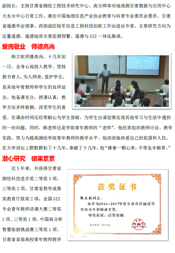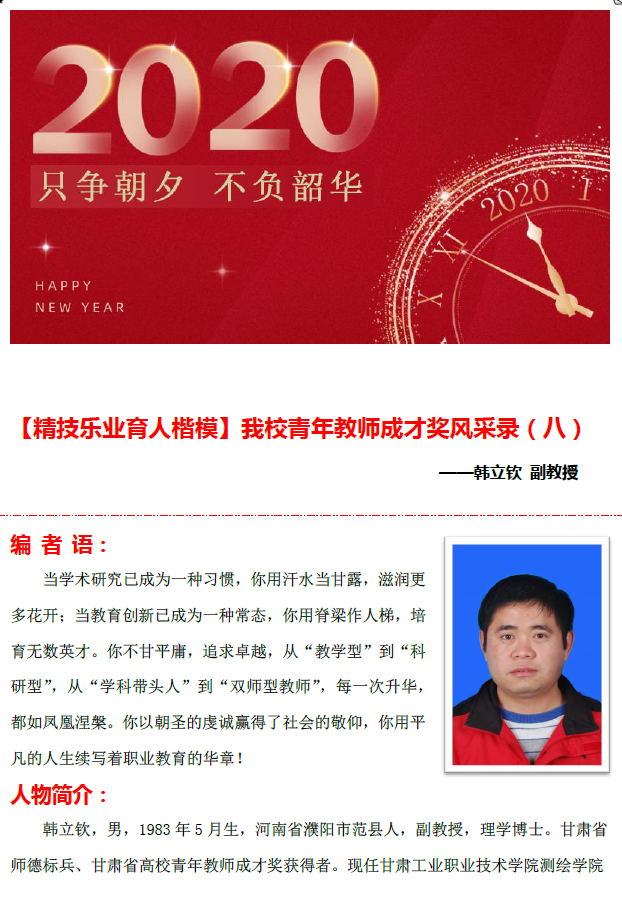 公司精技乐业育人楷模青年教师成才奖韩立钦副教授风采