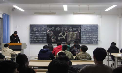 2019年11月21日伟德体育19级全体员工在各班自习室召开了学习贯彻党的十九届四中全会会议精神的主题班会。