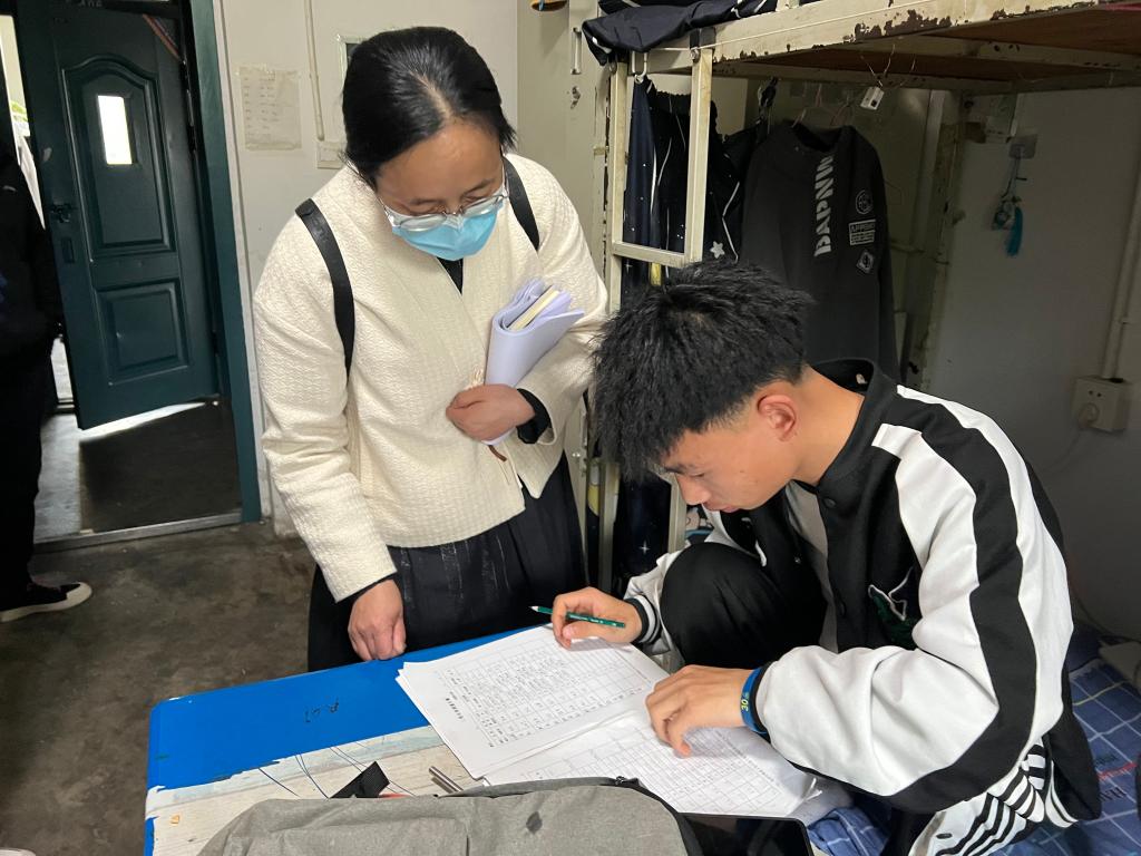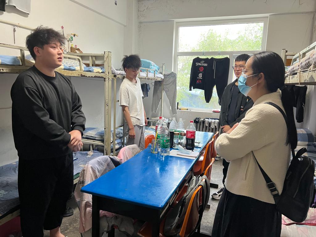 在员工公寓,副经理杨爱琴对公寓卫生进行督促,对仪器的放置进行现场指导,并与员工进行亲切交流,了解同学们的学习、生活、思想动态和需求。随后,向同学们介绍了当前严峻复杂的疫情形势,希望大家能理解并支持公司的管理规定。
