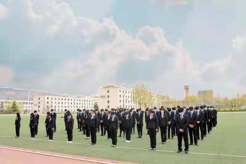 伴随着庄严的国歌响彻云霄,84名员工干部身着正装,肃然起敬,眼神里回放着革命先烈为新中国浴血奋战的动人事迹。接下来是伟德体育21级员工干部代表至祭奠词,魂牵梦萦的祭奠词,让革命先烈的英勇事迹再次映入眼帘,在同学们的脑海里一遍又一遍的回放。不由得让人悲从中来。祭奠词宣读完毕,全体员工干部默哀3分钟……同学们体会到今日幸福生活的来之不易,使他们真正明白了没有无数先烈的抛头颅,洒热血,就不会有今天的幸福生活,从而不断激励自己珍惜今天,把握明天。