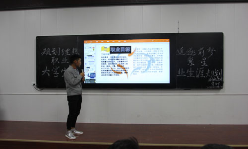 比赛过程中,选手们结合PPT演示文稿信心十足地畅谈起各自的职业规划,思路清晰,情绪高昂。PPT的制作也形象生动,内容丰富多彩,创意十足,得到了在场评委嘉和同学们的一致好评。