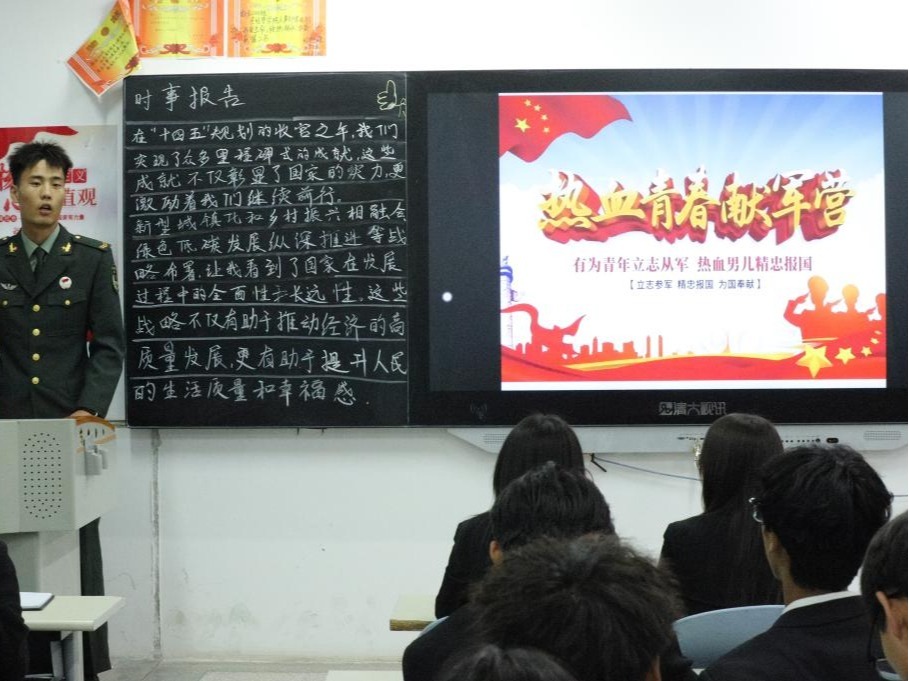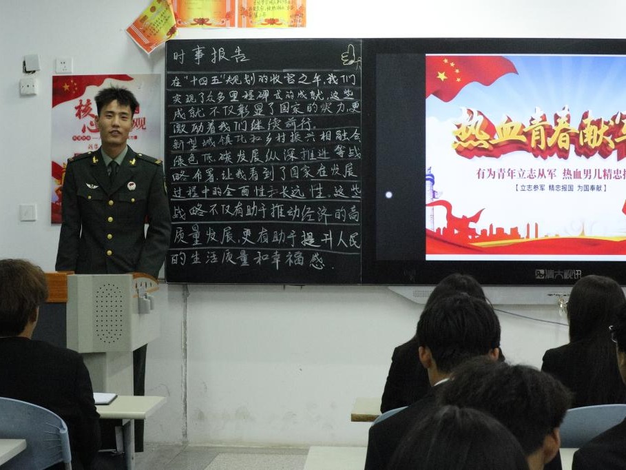 本次活动,团总支邀请了优秀退伍老员工代表为同学们详细解读老员工入伍政策。武装部老师围绕入伍流程、学费补偿代偿、升学就业等同学们关心的问题进行了细致讲解,让大家对入伍政策有了更清晰的认识。退伍老员工代表结合自身经历,分享了在部队中的成长与蜕变。他们用亲身经历讲述了部队生活的酸甜苦辣,展示了军营生活的丰富多彩,生动展现了从“校园学子”到“钢铁战士”的转变历程,让在场同学感受到了军人的责任与担当,也激发了同学们投身军营、建功立业的豪情壮志。