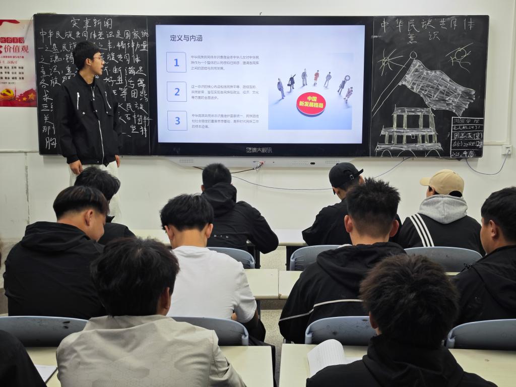 在团课期间,各班团支书通过播放多民族共同奋斗的纪录片,展示各民族同胞在国家建设中携手共进的画面。随后,结合历史案例,讲述各民族在漫长岁月里相互交流、融合,共同缔造伟大祖国的故事,同学们认真聆听,踊跃发言,有的同学分享家乡各民族和睦相处的场景,有的同学表示,要积极传播民族团结知识,用实际行动维护民族团结。