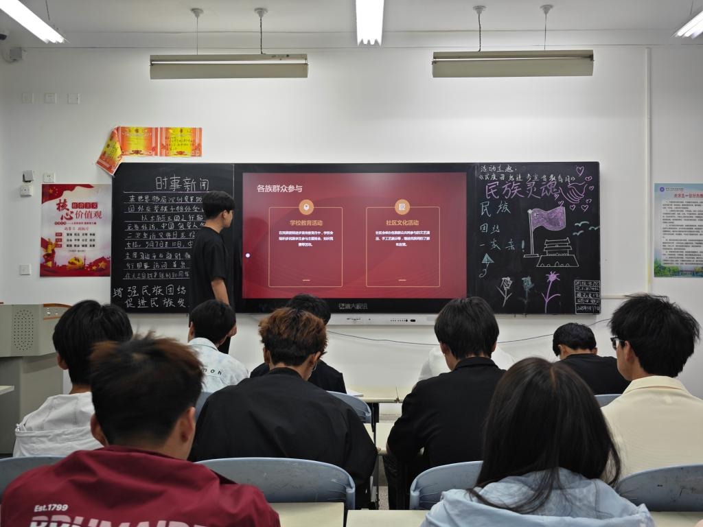 本次团课,团总支带领同学们通过 PPT的形式,展示了新中国成立以来民族地区发生的翻天覆地的变化和取得的辉煌成就,以及我国各民族和睦相处、和衷共济、和谐发展的生动画面。给同学们普及了国家通用语言文字知识,邀请了来自不同民族的同学用普通话分享自己的民族故事和民族特色。同学们积极参与,现场气氛热烈,大家深深感觉到各民族要像石榴籽一样紧紧拥抱在一起,团结友爱、守望互助,才能实现中华民族的伟大复兴。
